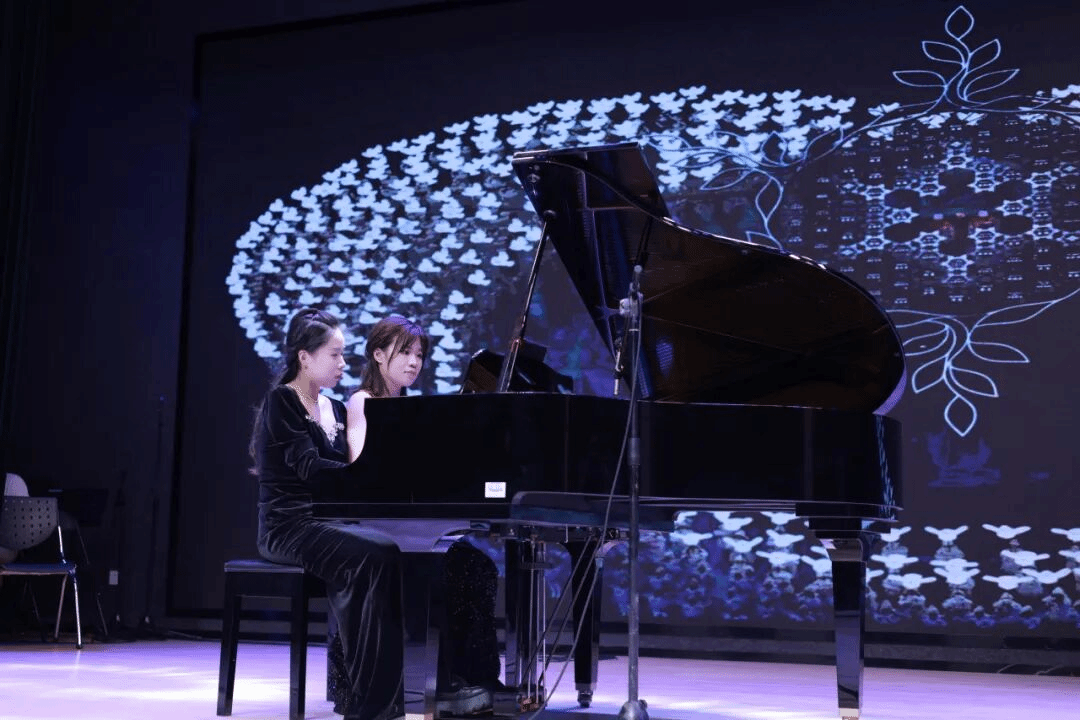杨子萱和孔杨君同学带来的钢琴四手联弹《雪花》,用灵动的音符描绘出雪花飘落的唯美画面。两位同学配合默契,钢琴声时而轻盈飘逸,如雪花在空中翩翩起舞;时而轻柔舒缓,似雪花静静落在大地,为观众带来了一场唯美的视听享受。