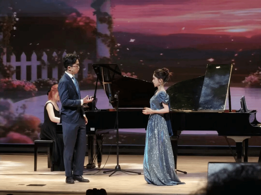 李浩琪、葛俊麟带来的二重唱《双唇缄默》,以默契的配合和富有感染力的演唱,展现了歌曲中复杂的情感;杨宇娜的女声独唱《为艺术为爱情》,用深情的歌声诠释了艺术家对艺术与爱情的执着追求;施明辉的男声独唱《你是我心中的一切》,以激昂的情绪唱出了心中的炽热情感;李倩、胡道燕的二重唱《待微风轻轻拂过》,歌声温柔细腻,仿佛微风拂面;丁诗蕙的女声独唱《她抬头仰望》,用独特的嗓音演绎出歌曲的韵味。最后,全体演唱者共同带来《饮酒歌》,在侍琪钧、张尧的钢琴伴奏下,欢快的节奏和激昂的歌声,让全场沉浸在欢乐的氛围中。