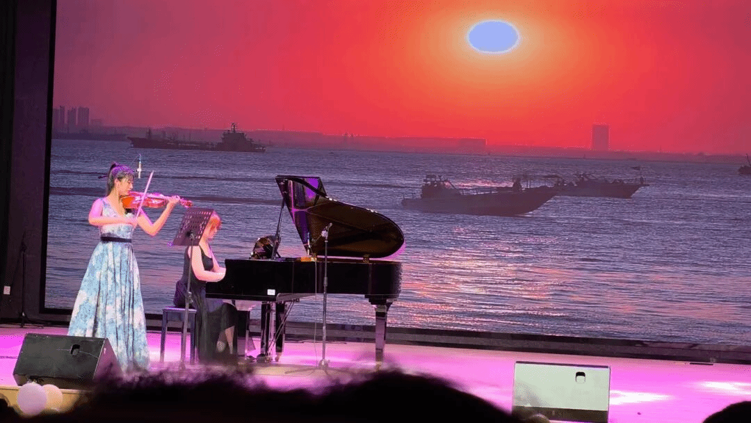 小提琴钢琴二重奏《golden hours》在张倩妍与侍琪钧的默契配合下精彩上演。小提琴的悠扬旋律与钢琴的灵动音符相互呼应,交织出一段如诗如画的音乐篇章。乐曲中,小提琴明亮的音色与钢琴丰富的和声相得益彰,带领听众仿佛漫步在金色的时光隧道中,感受着美好时光的流淌。