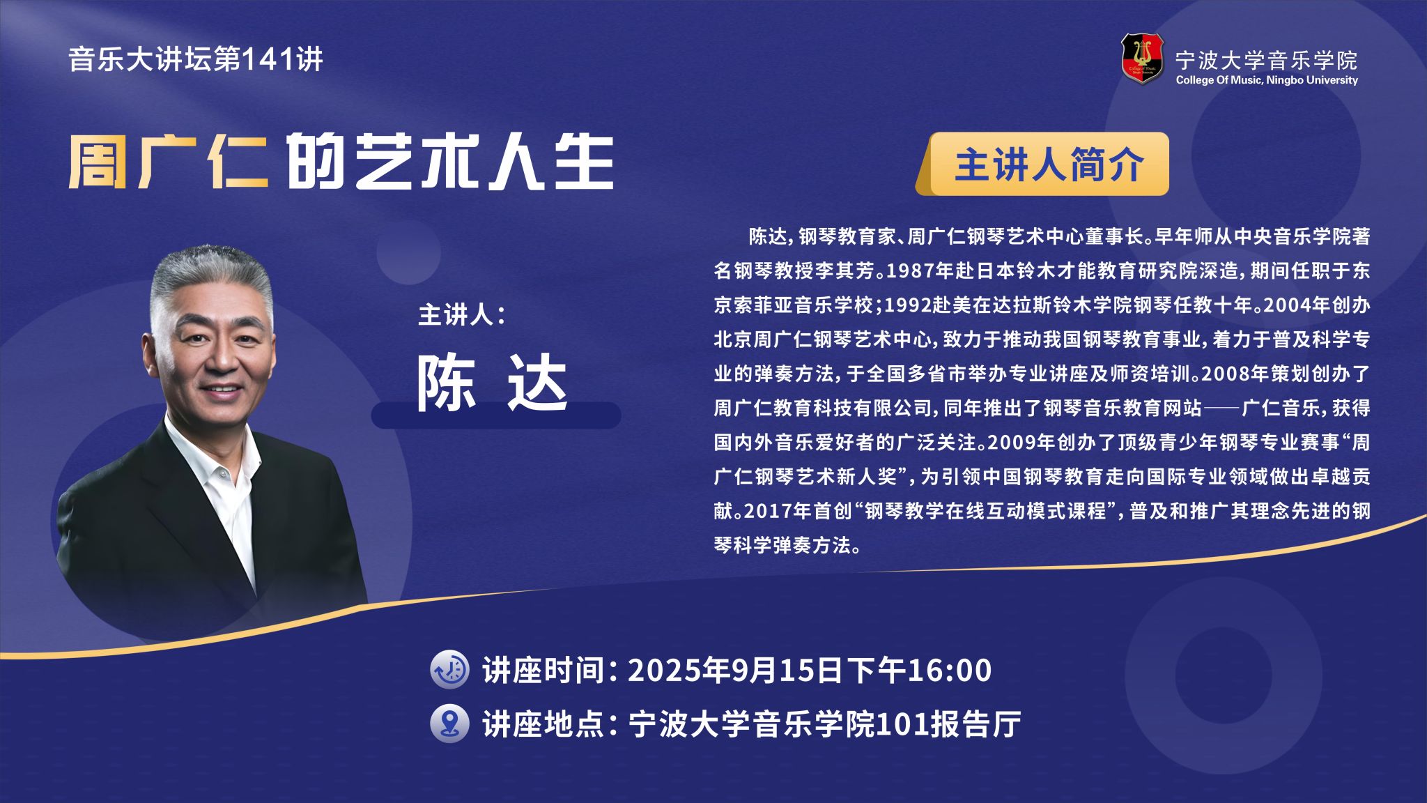 邀请钢琴教育家、周广仁钢琴艺术中心董事长陈达做客音乐大讲坛第141讲,为学院师生做题为《周广仁的艺术人生》的学术讲座。陈达,钢琴教育家、周广仁钢琴艺术中心董事长。早年师从中央无码人妻