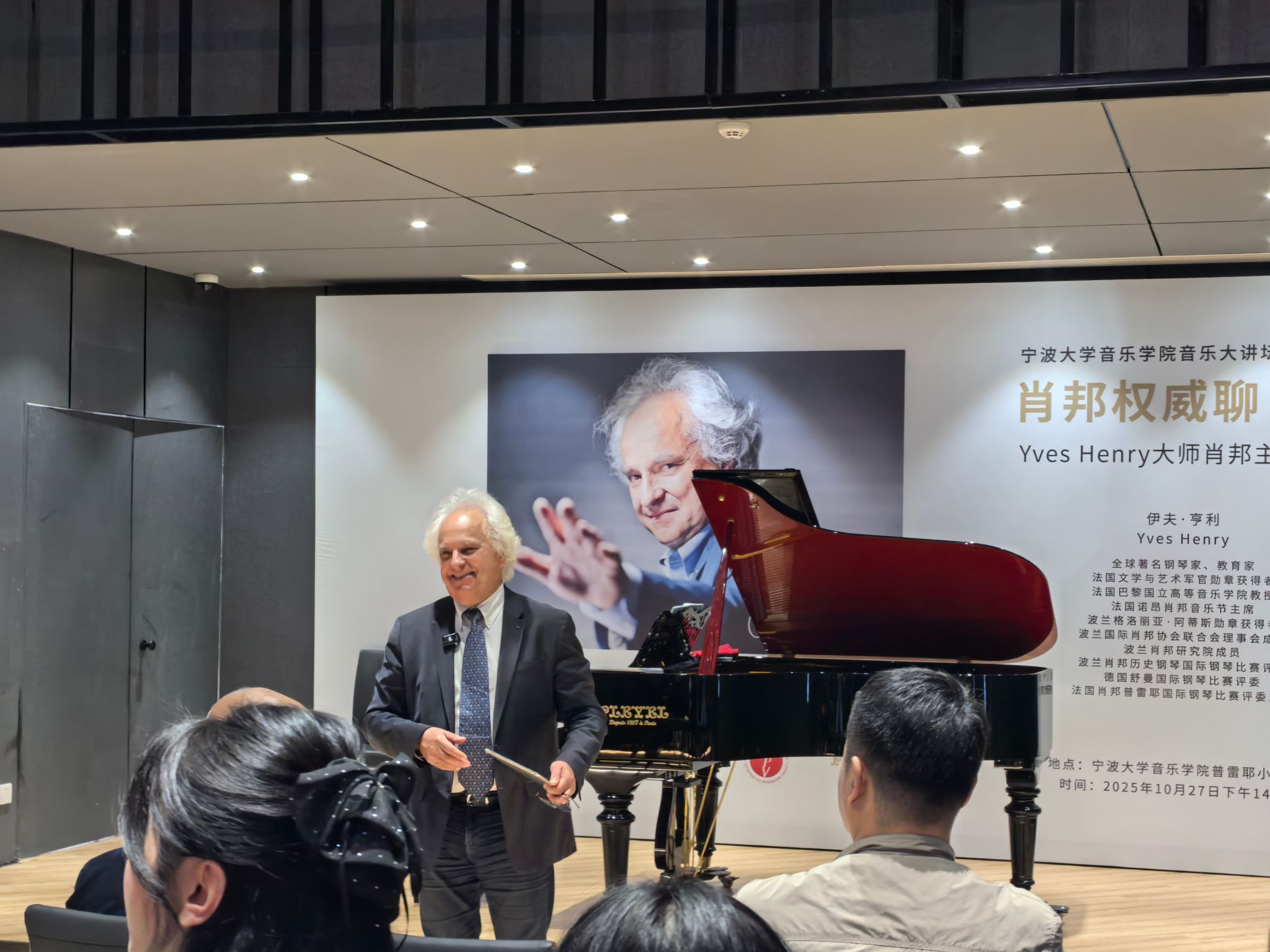 在 "音乐大讲坛第 143 讲" 的讲座环节,伊夫・亨利教授结合自身 2025 年担任肖邦国际钢琴比赛评委的经历,深度解析了本届赛事的评审标准与艺术亮点。