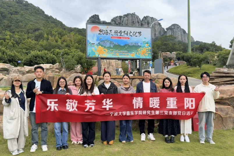 组织研究生第三党支部全体党员在2025年10月26日奔赴象山东海灵岩景区,开展了一场以“乐敬芳华,情暖重阳”为主题的党日活动。